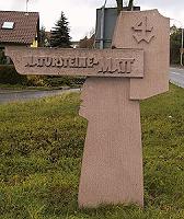 Vor dem Ortsschild Richtung Oberhaugstett, steht dieses steinerne Hinweisschild.